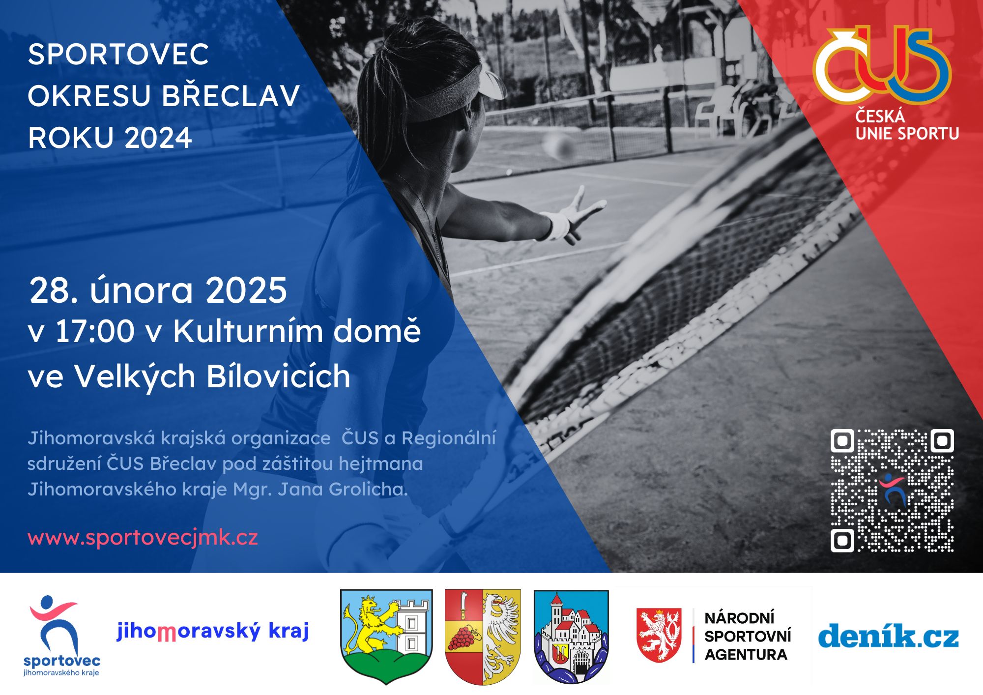 Slavnostní vyhlášení ankety Sportovec roku 2024 okresu Břeclav se uskuteční 28.2.2025 v Kulturním domě ve Velkých Bílovicích