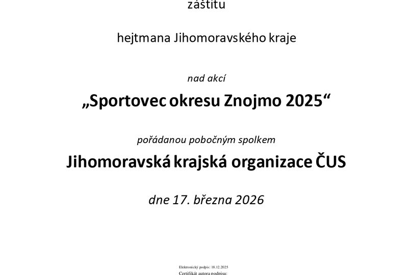 ZnojmoGalavečer - vyhlášení ankety Sportovec okresu Znojmo 2025