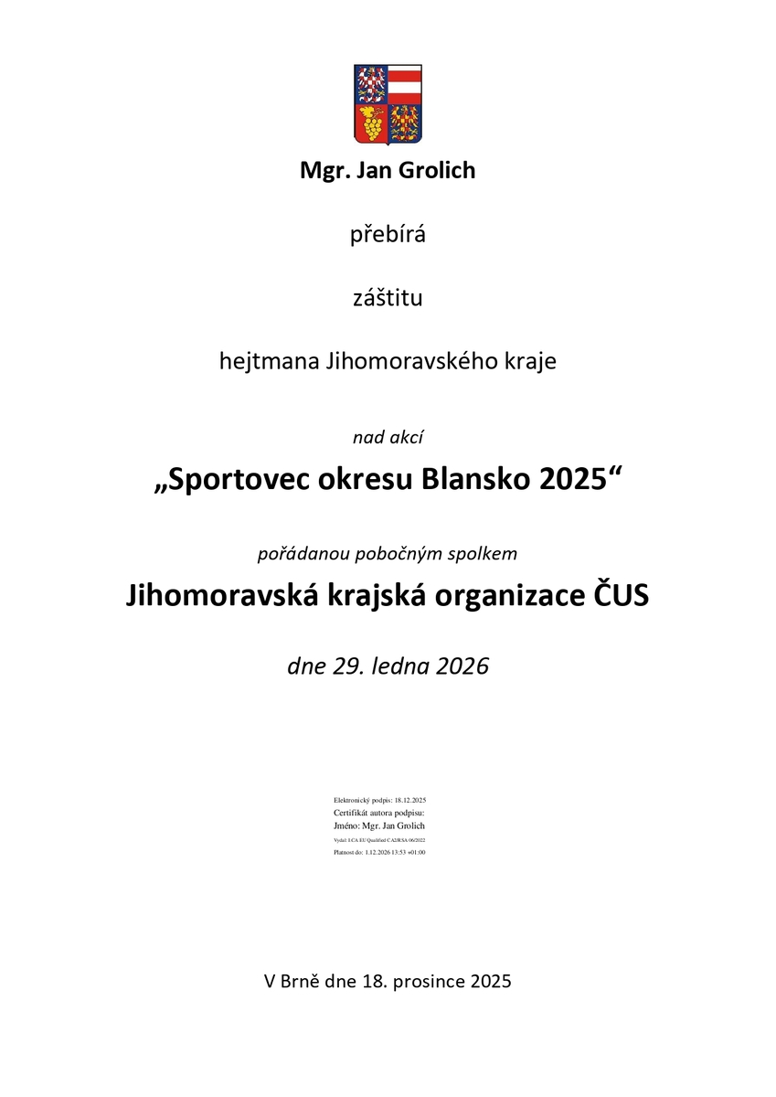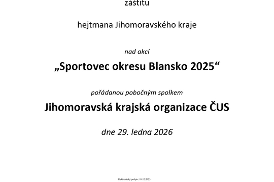 Galavečer - vyhlášení ankety Sportovec okresu Blanska 2025